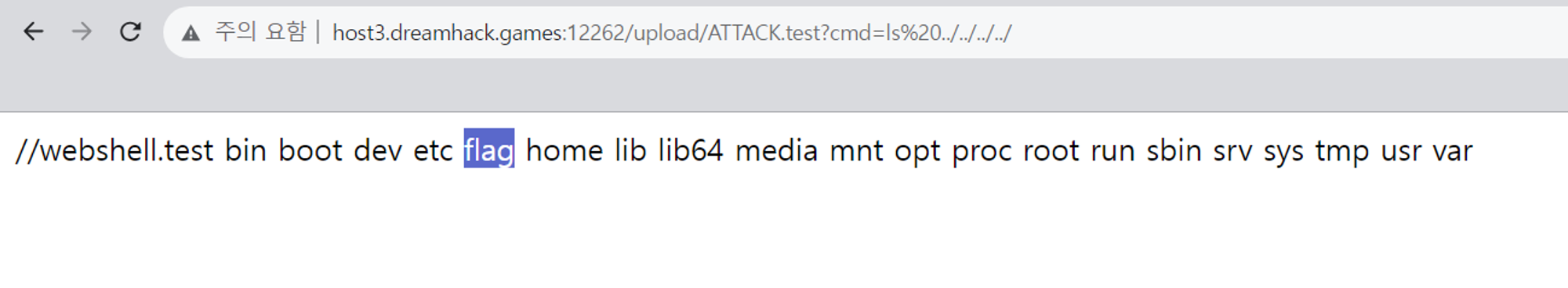 그럼 이제 cmd 창에서 디렉터리를 옮겨다니듯이 `ls ../ 이런식으로 flag 파일을 찾으면 된다.