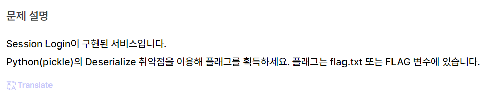 무슨 취약점인지 모르지만 일단 python의 pickle에서 Deserialize 취약점을 이용하여 문제를 풀면 되는 것 같다