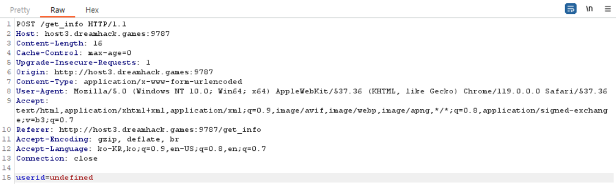 그렇다면 위의 버프 스위트 리퀘스트에 ‘userid = undefined’에 undefined를 지우고 ../flag를 넣으면 플래그가 나올 것 같다